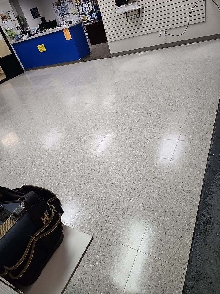 This project highlights the maintenance and cleaning of commercial spaces, including office floors, entrance areas, and maintenance supply stores.